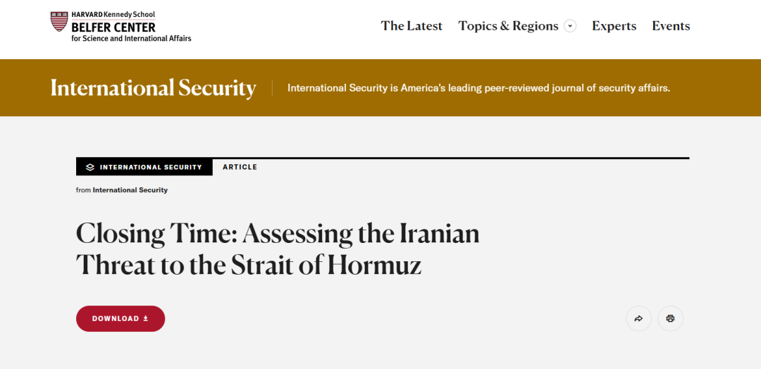 老刘查阅了美国哈佛大学肯尼迪学院贝尔弗中心多年前发布的一份题为“关闭时刻:评估伊朗对霍尔木兹海峡的威胁”的报告。